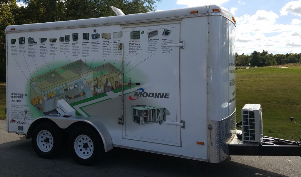 | The R.A. McGovern product trailer showcases products from Modine, Titan, Air Energy, Ouellet, Slant/Fin, Columbia, and Reimers. The trailer is excellent for contractor days, training sessions, lunch & learns, and more. |